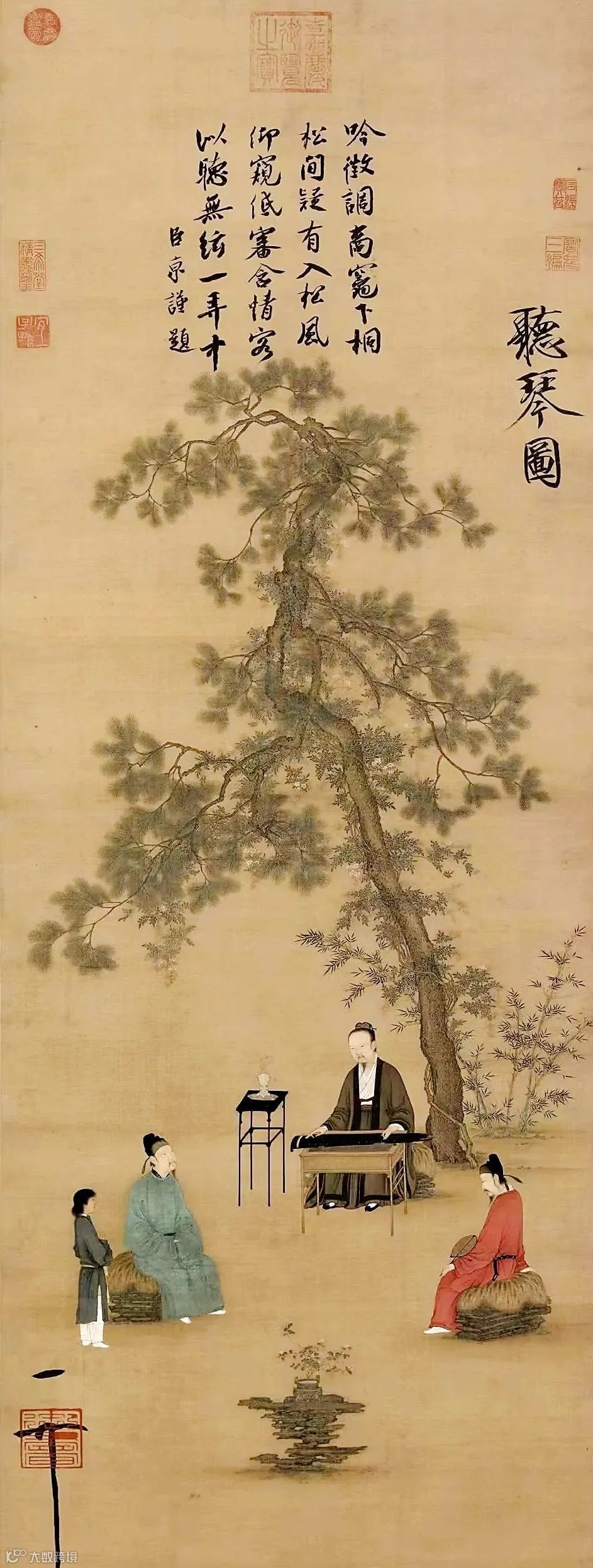 北宋时,蔡氏兄弟先后任宰辅,两人皆为书法名家,徽宗皇帝《听琴图》题诗出自蔡氏。