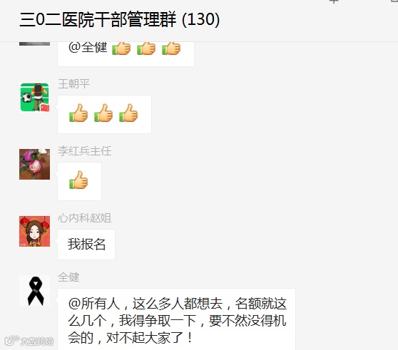 在航空工业通用医疗三〇二医院的微信群里,有一位检验科医生@院长申请赴一线。陈述完专业理由后他提了个特殊理由:“我们医院这么多人出去,吃不惯也不好,我做菜还是很好吃的,给他们做后勤保障绝对也没问题。带上我只有好处没有坏处,我也不会给组织拖后腿,希望院长给我争取一下,谢谢!”他说这么多人都想去,名额就这么几个,他不争取一下就没得机会的,对不起大家了!