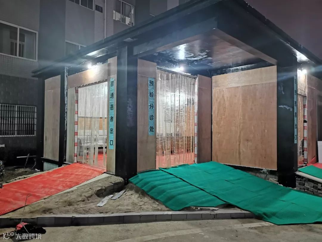 由于春节期间找不到建筑工人,在党员带领下,医护人员和职工纷纷上阵,在一天不到的时间内,在三〇二医院搭建起了初见雏形的预检分诊处。