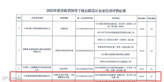 近日,青海省交通运输厅公布了2023年度公路建设市场信用评价结果,养护集团获评2023年度青海省国省干线公路设计企业信用评价“AA”级作业单位。