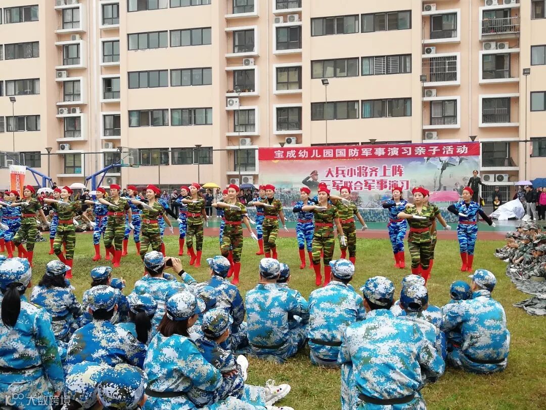 10月13日上午宝成幼儿园200多名孩子和家长及全体教职员工在宝成足球场举行了“大兵小将齐上阵、共谱锦绣家国梦”大型亲子国防教育活动。