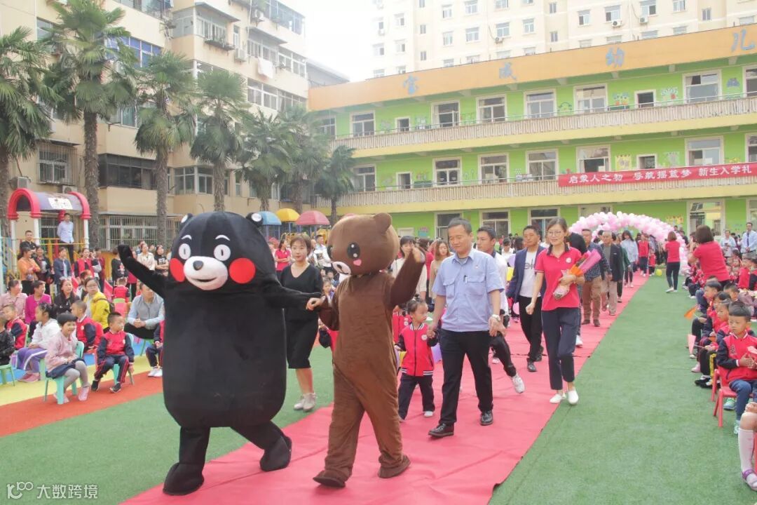在欢快的音乐声中,70名新生宝宝在大型玩偶“熊宝宝”的带领下和爸爸妈妈的陪伴下,踩着鲜艳的红地毯,走进成长之门,迈向了万千世界的成长新历程。大班的哥哥姐姐们将亲手制作的礼物——小飞机送给小弟弟和小妹妹,希望弟弟妹妹们从此以后展翅高飞,在广阔的天空里自由翱翔!小朋友们互送祝福,操场里处处洋溢着温暖与喜悦。