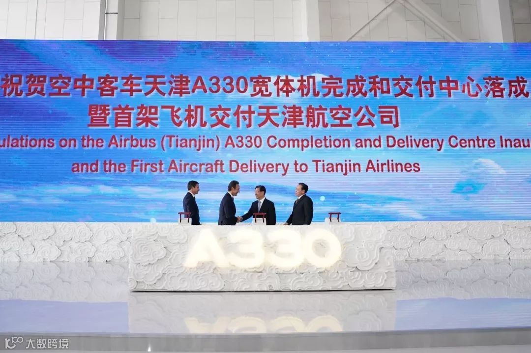 9月20日,空客天津A330宽体机完成交付中心项目落成暨首架飞机交付仪式在天津举行,首架由空客中欧员工共同完成的A330飞机正式交付天津航空公司。空客天津A330宽体机完成和交付中心是欧洲以外首个宽体机完成和交付中心,这使空客和中国航空业长久以来的合作伙伴关系从单通道飞机领域扩展到宽体机领域。天津也成为全球第四个有能力同时生产单通道和双通道飞机的城市。