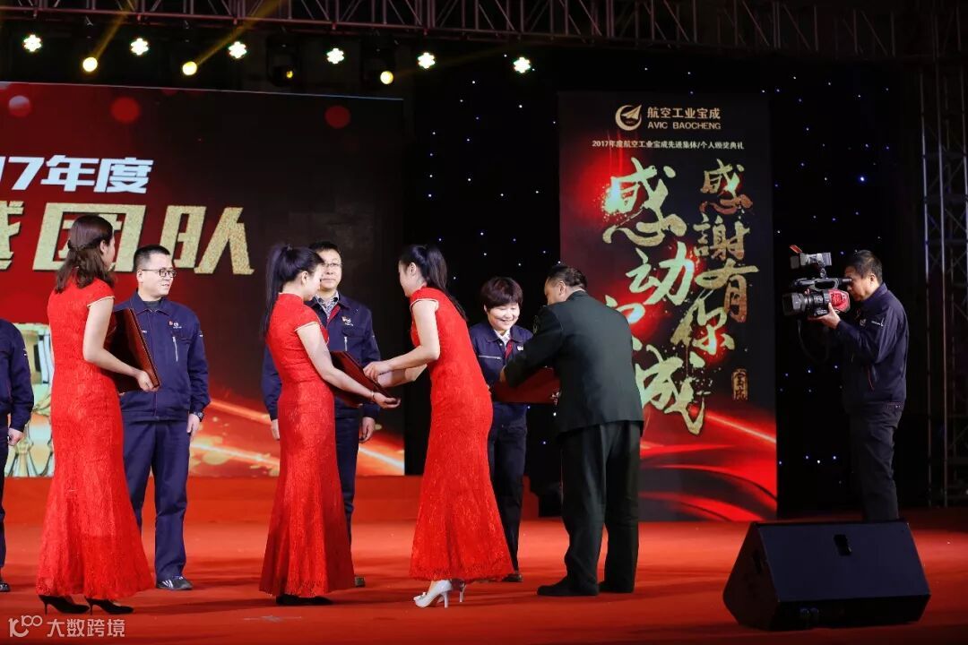 1月29日晚,宝成公司在宝成体育馆隆重举办“迈向新征程启航新时代”颁奖晚会。公司董事长、党委书记董松楠,总经理李宏印,公司纪委书记宋耀,总会计师董会昌,副总经理曾飞龙、巩冠峰、刘向军,省总工会副巡视员李岳文,空军驻厂军事代表室总代表蔡军,陆航驻兰州地区总代表李栋,陆装西安军代表驻天水地区军代室总代表孟劲帆,海军驻宝鸡地区军代表室阎源江代表,空军驻西北地区军事代表室陈西战代表,及公司各单位800余名员工、退休职工参加了颁奖晚会。