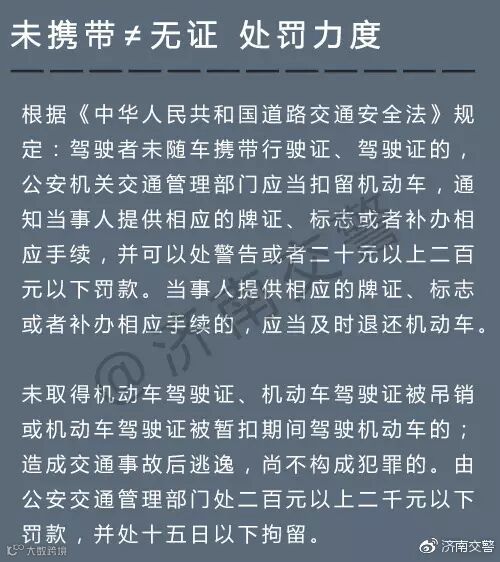 网上有传说,开车没有随身携带驾照会按照“无证驾驶”处理。这可是让不少童鞋紧张了一下,尤其是那些平时马马虎虎的童鞋们。万一忘带驾照,这付出的代价真的是有点惨重。