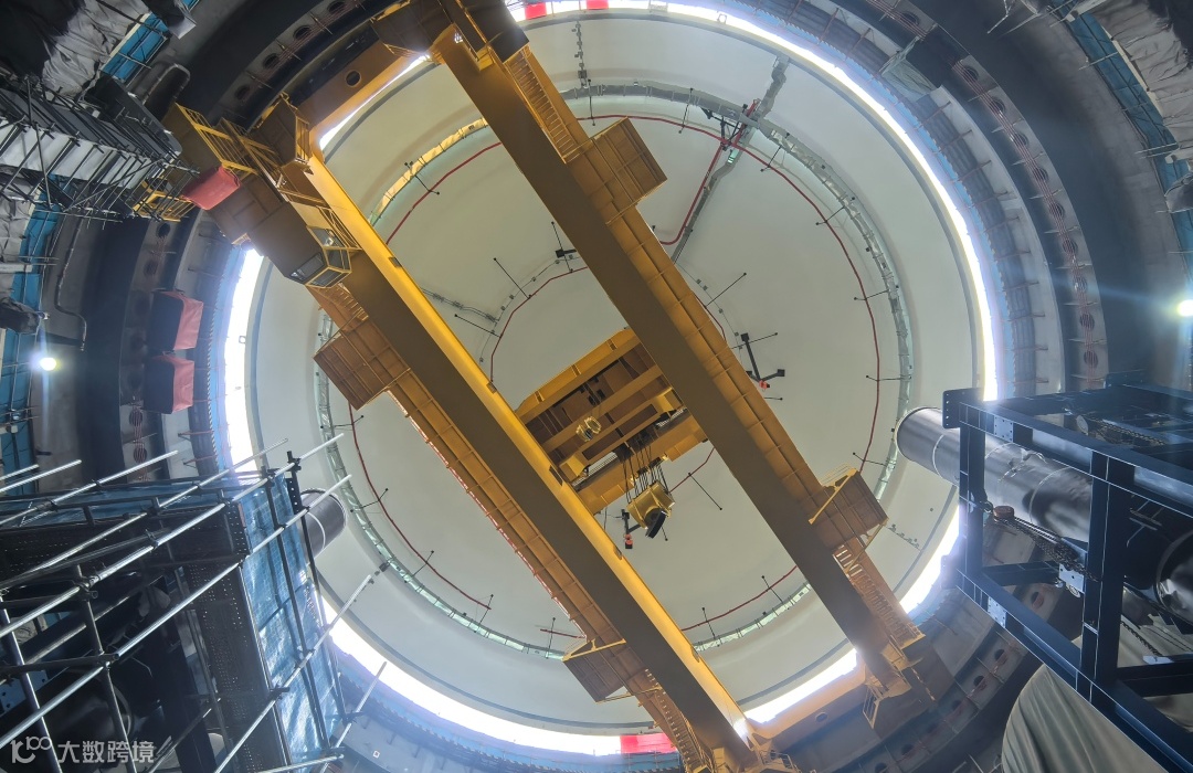 钢制安全壳是核电机组防止放射性物质外泄的关键屏障,由底封头、圆柱形筒体和顶封头模块构成。此次吊装的顶封头为半椭球结构,是安全壳封顶的“最后一块拼图”。