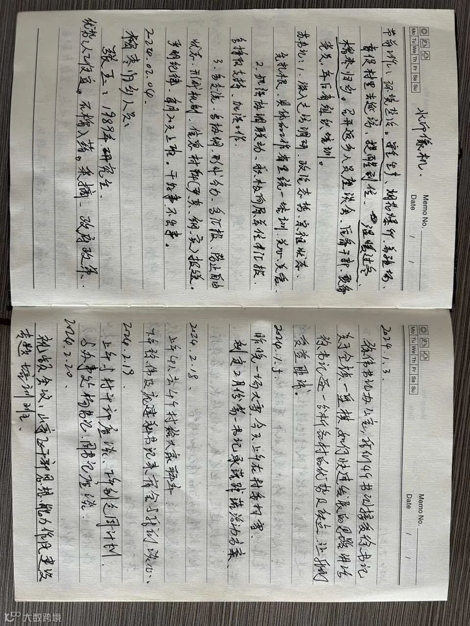 马庄村作为西集镇的镇驻地村,村里老龄化严重,既没有丰富的自然资源,也少有历史人文景观,基础设施不完善,村集体年收入排在后位,这一切都亟待改变。安顿好后,蔡小强就迅速行动起来,为了更快的了解村情民意,他给自己添置了一辆电动车,方便挨家挨户走访。慢慢的,宿舍桌上的扶贫书籍和资料越来越多,有点皱巴的笔记本上密密麻麻记录着计划的具体事项:1月20日,节前工作:环境整治、安全生产、烟花爆竹、督促寻访;2月19日,村干部座谈,制定周计划……