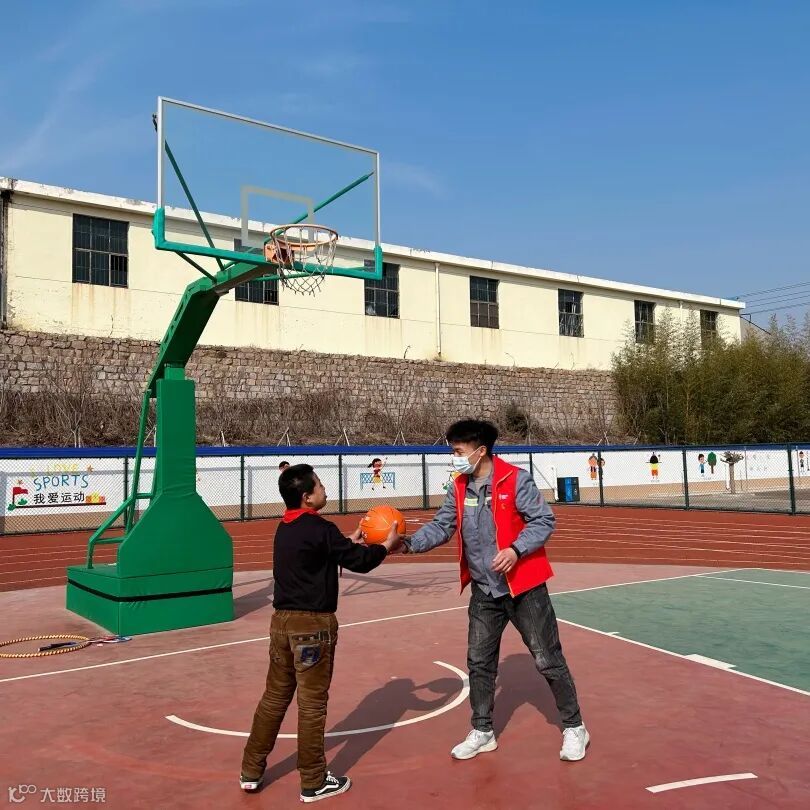 “小臂和上臂要成90度,投篮时可以控制方向”。经过点拨,小朋友投篮连中三球,缠着志愿者再多传些“功力”给他。