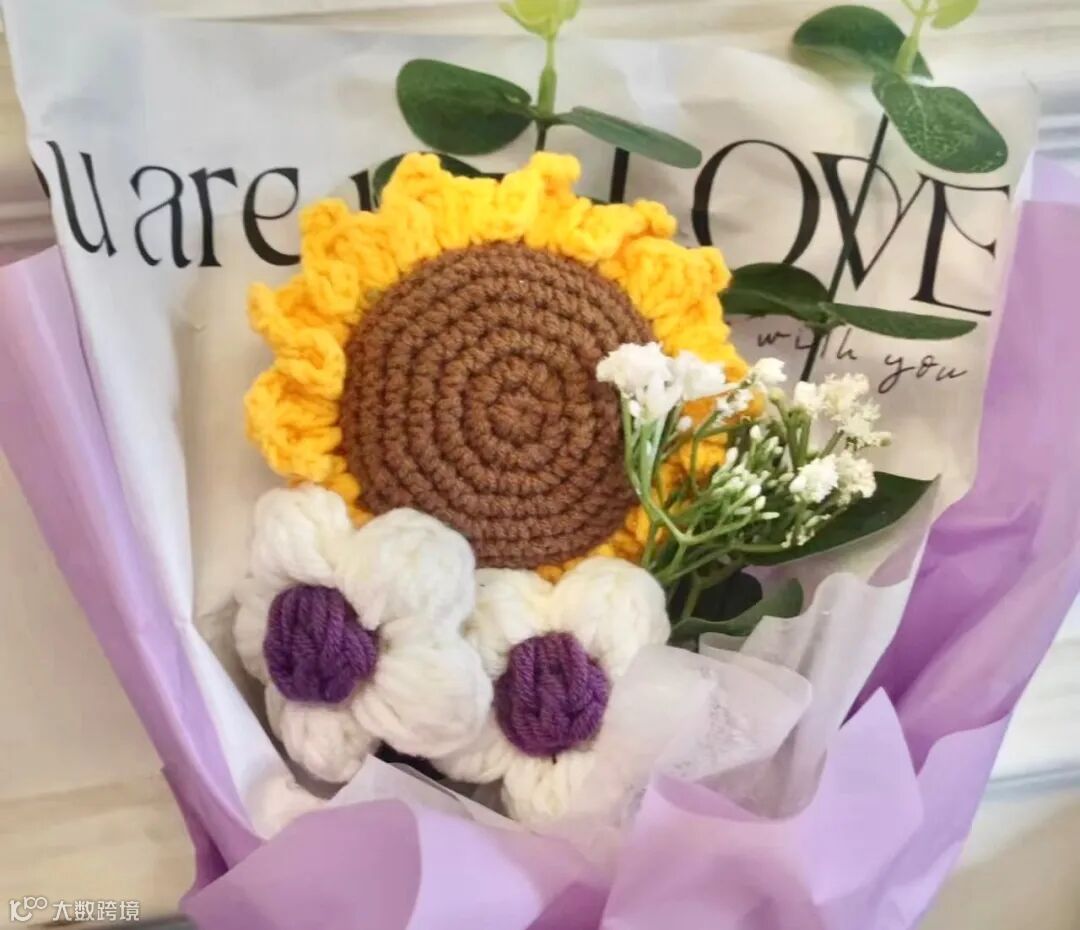 这束毛线花,是家里的旧毛衣制成的。小时候的毛衣都是奶奶亲手织出来的,它们是温暖的记忆,把毛线拆下来,再勾出了一朵朵鲜艳的花,配上包装纸就成了美丽的花束,于是一件旧毛衣在家中找到自己的新归宿。(王柳)