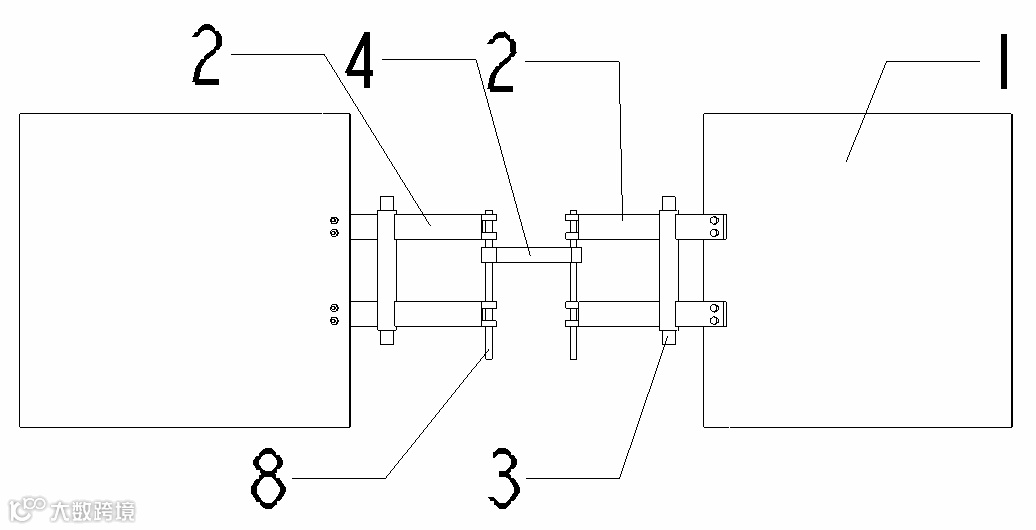 机架筒内总共设有四组上述机构(如图3所示),沿机架筒轴向分上下两层各两组布置,上层两组机构的叶片圆周上相隔90°布置,下层两组布置方式同上,但与上层叶片相互错开45°角,且上下两层叶片间留有足够的空间,以免造成叶片转动时的相互干涉;在机架筒外部的各摆杆外端固定连接上风力叶片;当风吹向叶片时,机架筒上迎风侧一侧叶片在风力的作用下推动摆杆绕其与机架筒组成的转轴旋转张开,同理背风侧一侧叶片旋转收缩,两摆杆的运动在连杆的联动作用下相互助力完成。