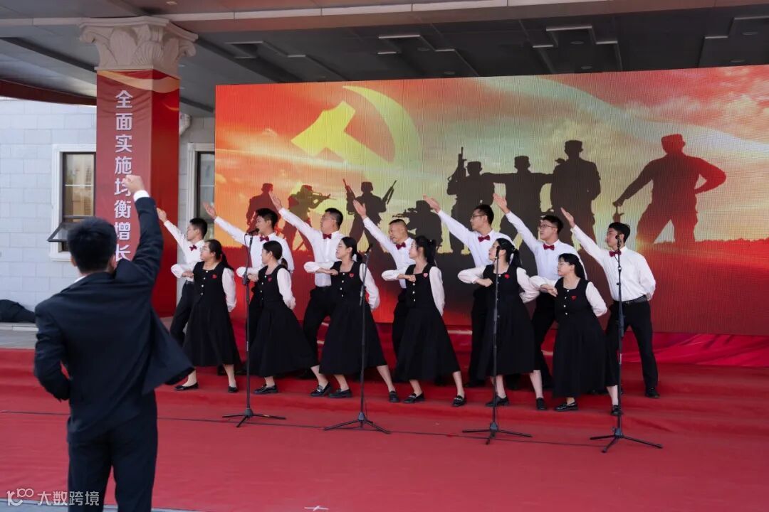 “河山总在我梦萦,祖国已多年未亲近……”比赛在2024届新员工代表队演唱的《我的中国心》中拉开帷幕,16支队伍依次上台,用《我和我的祖国》《祖国不会忘记》《爱我中华》表达对祖国的真挚深情,用《当那一天来临》《中国中国鲜红的太阳永不落》《这盛世如你所愿》描绘对革命先辈的崇高敬意,用《歌唱祖国》《我们走在大路上》《强军战歌》抒发对美好未来的憧憬。嘹亮激昂的旋律萦绕在党组织活动中心广场上空,各支代表队精心的编排和富有创意的表演形式,将现场气氛一度推向高潮。