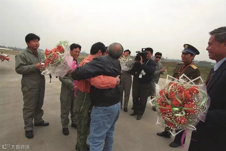 1998年3月23日,成都,身穿橘红色飞行服的雷强在众人簇拥下走向飞机跑道。