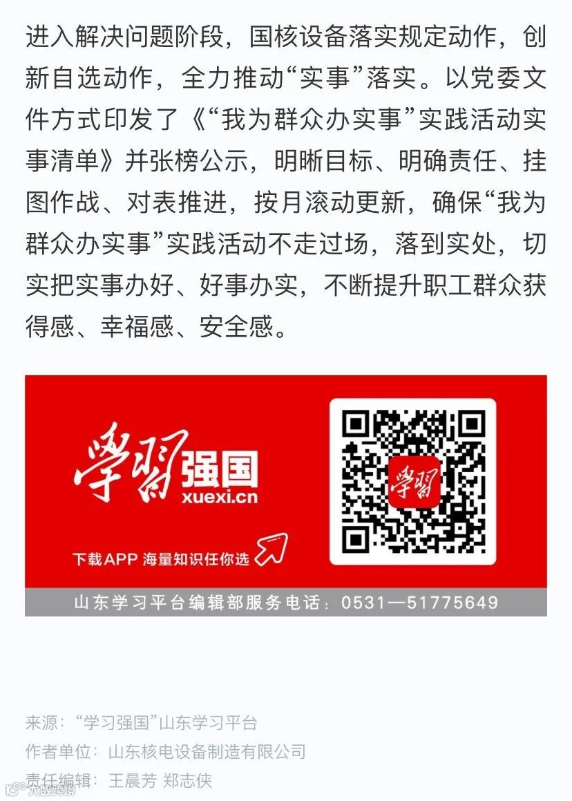 学史力行|山东核电设备制造有限公司:亮承诺、晒“清单”,为群众办实事(点击阅读原文进入链接)