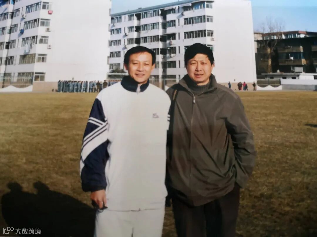 ▲宝成子弟、国脚王宝山与宝成电视站记者在宝成足球场合影