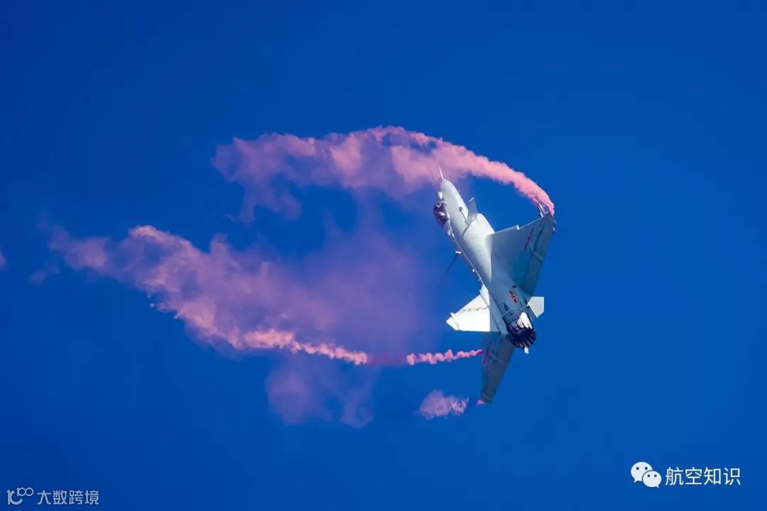 歼-10B表演的眼镜蛇机动,目测其仰角高达120度,机尾“拖着”机头向前的平飞状态非常明显,实际上这一机动动作也具有很大的战术意义,能够发挥可大立轴发射的新一代格斗空空导弹的优势,突然给后方“咬尾”的敌机来个“回马枪”。