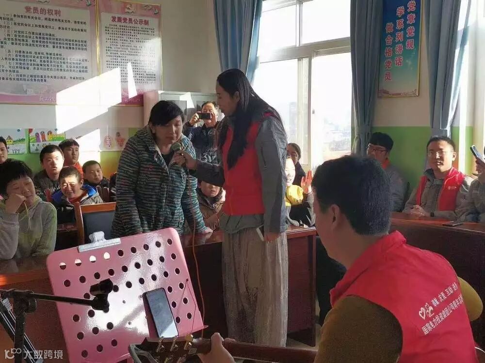 志愿者同孩子们一起合唱,