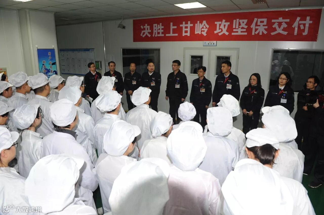 会后,董松楠等领导到光迅公司现场进行了“决胜上甘岭 攻坚保交付”出战动员。刘向军、黄岁海从光纤陀螺交付任务目标、完成意义方面进行了动员,光迅公司总经理樊海宁及装配、技术人员代表对确保年度光纤陀螺的交付做了庄重承诺。董松楠对光迅公司在公司新航姿任务交付所面临的严峻形势和重要意义进行了深刻的解读,明确集全厂之力,调动资源,做好光纤陀螺的交付保障;集全光迅之力,冲刺奋战,全力以赴投入到光纤陀螺的交付任务中,决胜“上甘岭”,攻坚保交付,为宝成的尊严决战决胜。
