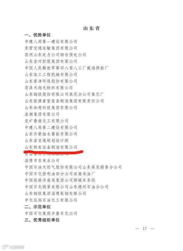 国核设备获得了全国“安康杯”优胜单位的称号!