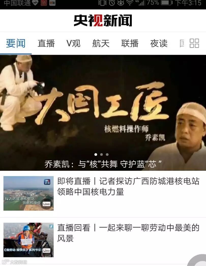 4月30日,CCTV强势推出《大国工匠》之中广核核燃料操纵员乔素凯,并对“国家名片”华龙一号示范项目防城港二期进行了直播,不仅是电视直播,央视新闻客户端还进行了长达一个多小时的直播,并且央视新媒体矩阵进行了全方位报道。中广核一度霸占了央视新闻app的首条和二条。晚上《新闻联播》还再次聚焦防城港核电。从上午到晚间,从电视到新媒体,中广核多次出现在央视荧屏!除此之外,5月1日,新闻联播还花了228秒时间就大国工匠桥素凯展开了报道。