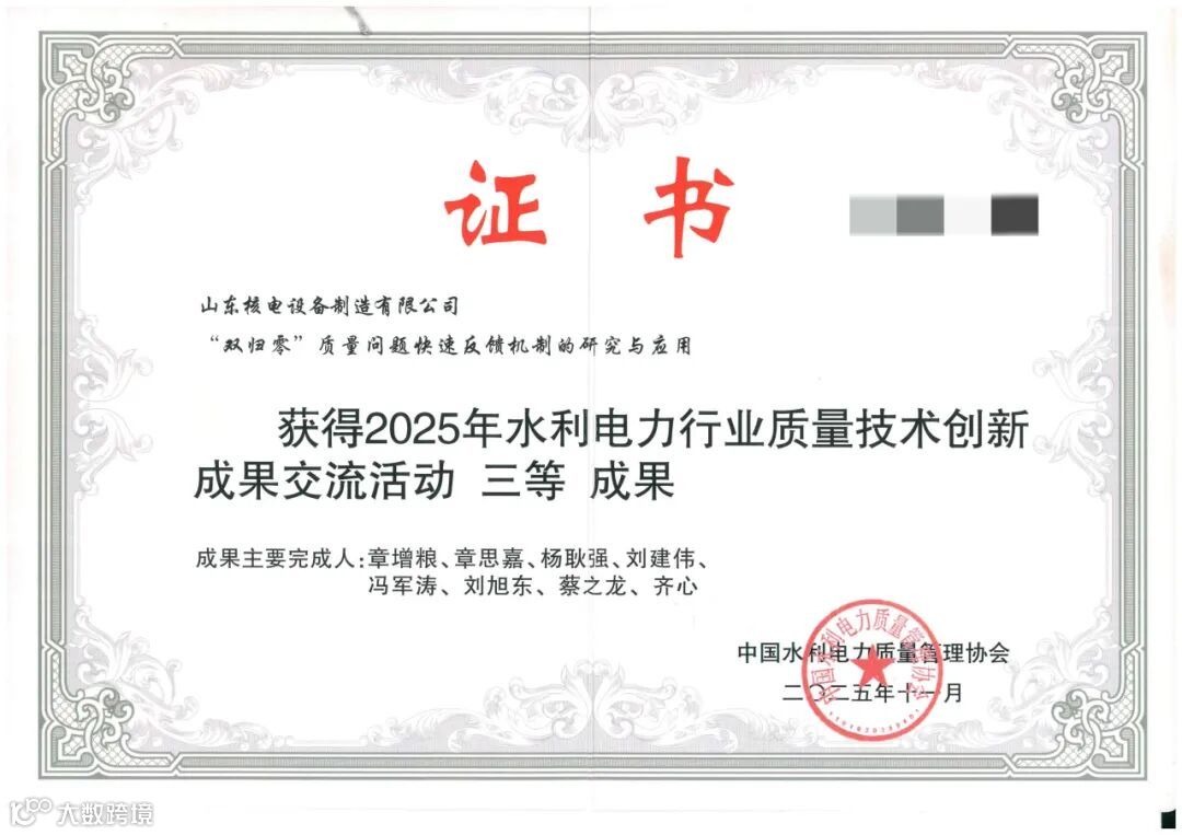 成果的获得,既是对当前质量管理工作的肯定,也是对持续深化质量创新的鞭策。未来,国核设备将不断探索质量管理新方法、新技术,为提升企业核心竞争力、推动行业质量进步贡献力量。