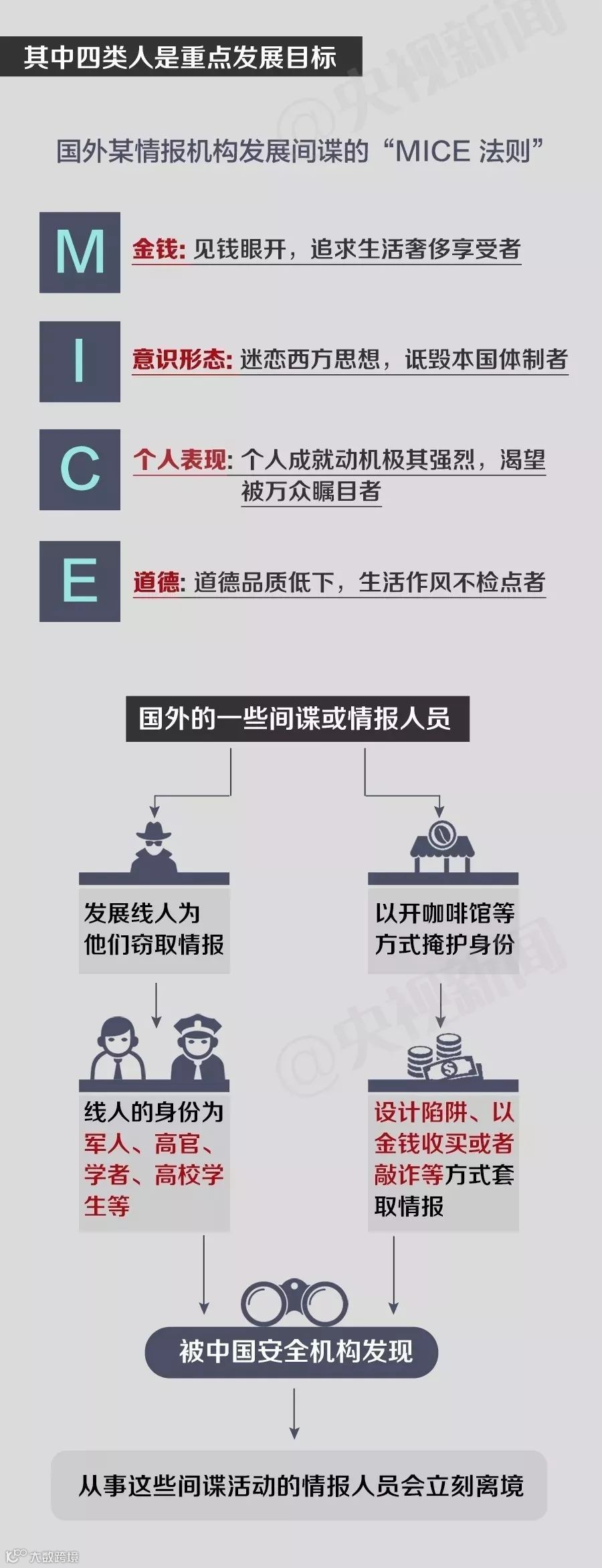 现代情报活动明确提出,通过金钱招募间谍不能给予重金,这甚至早已被各国情报专家写入公开出版的情报著作当中。但那些利欲熏心之徒对此却全然不知,依然做着卖情报暴富的白日梦。奉劝那些利欲熏心之徒,早点悬崖勒马才是正途。