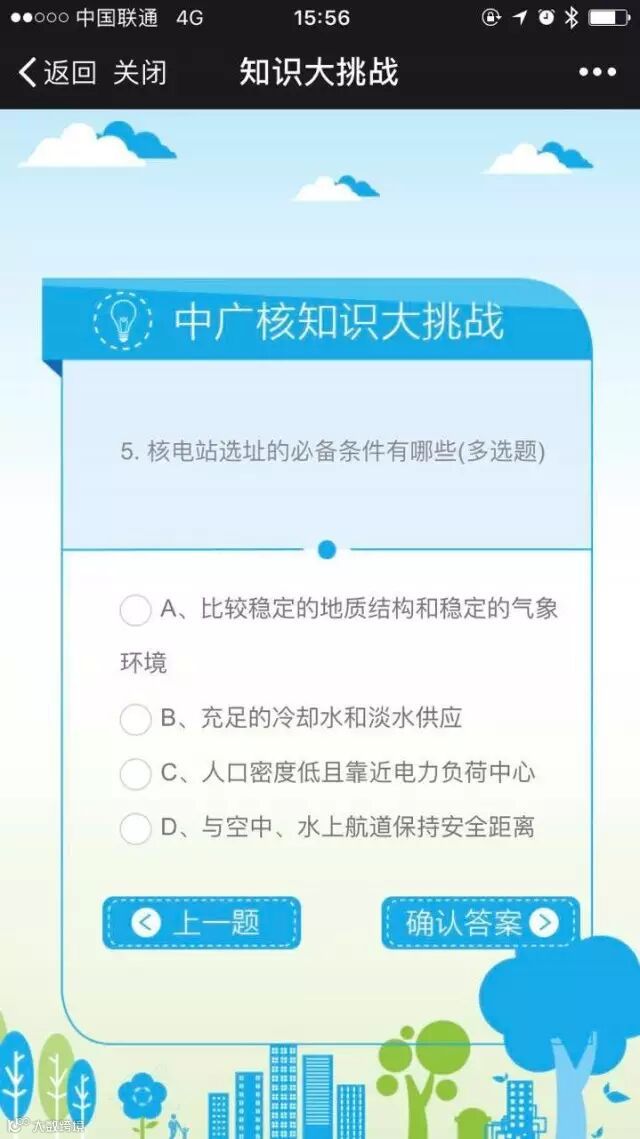 接下来,你就可以进入知识大挑战模块,检验一下自己对中广核和核电行业了解多少啦!每答对1题都可以积1分,10题全答对将有20分到手哦!