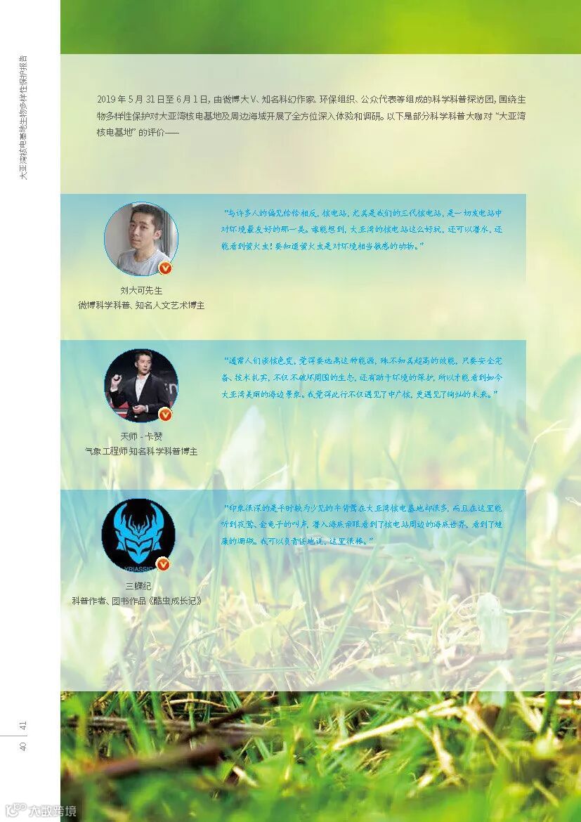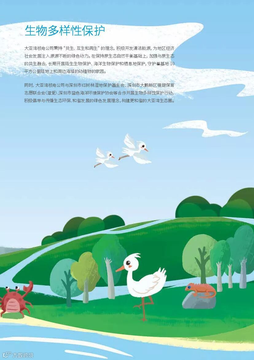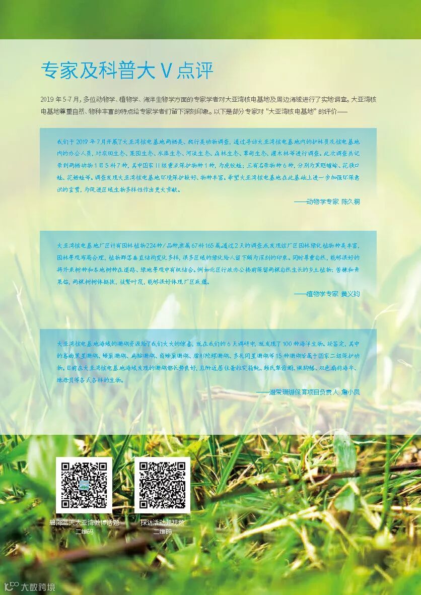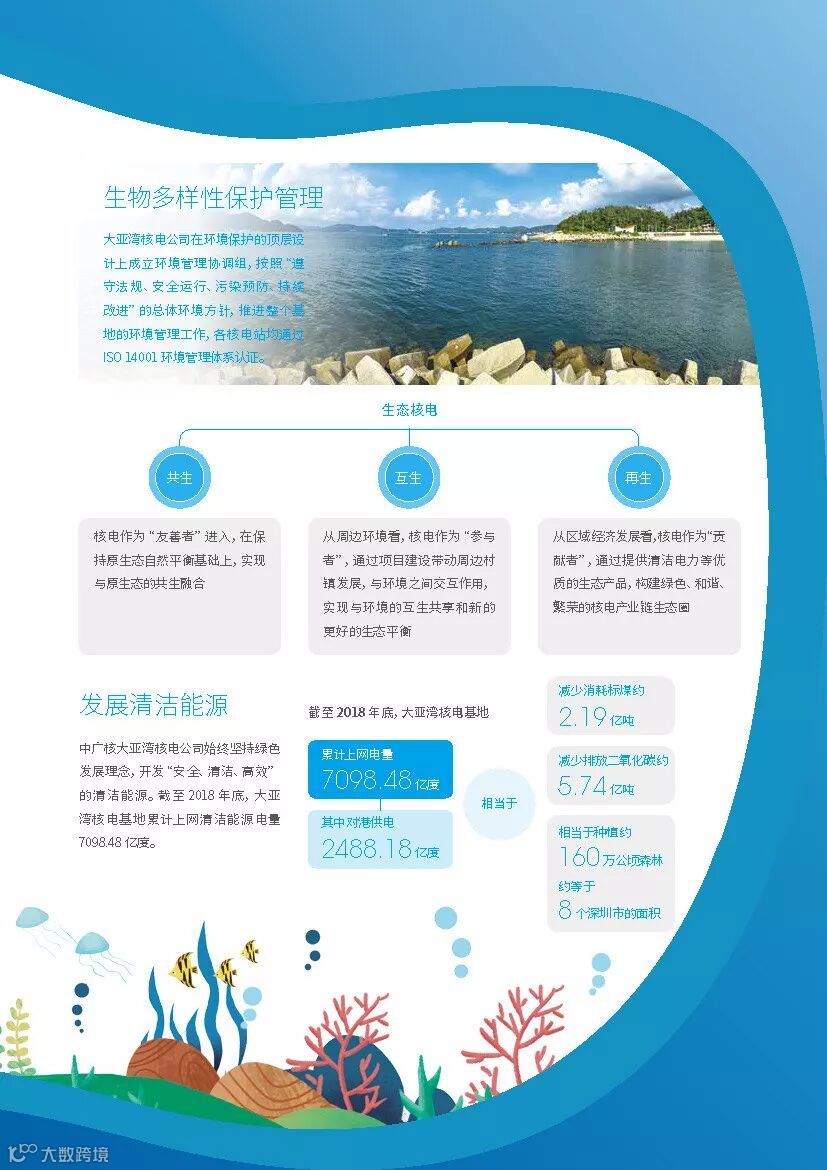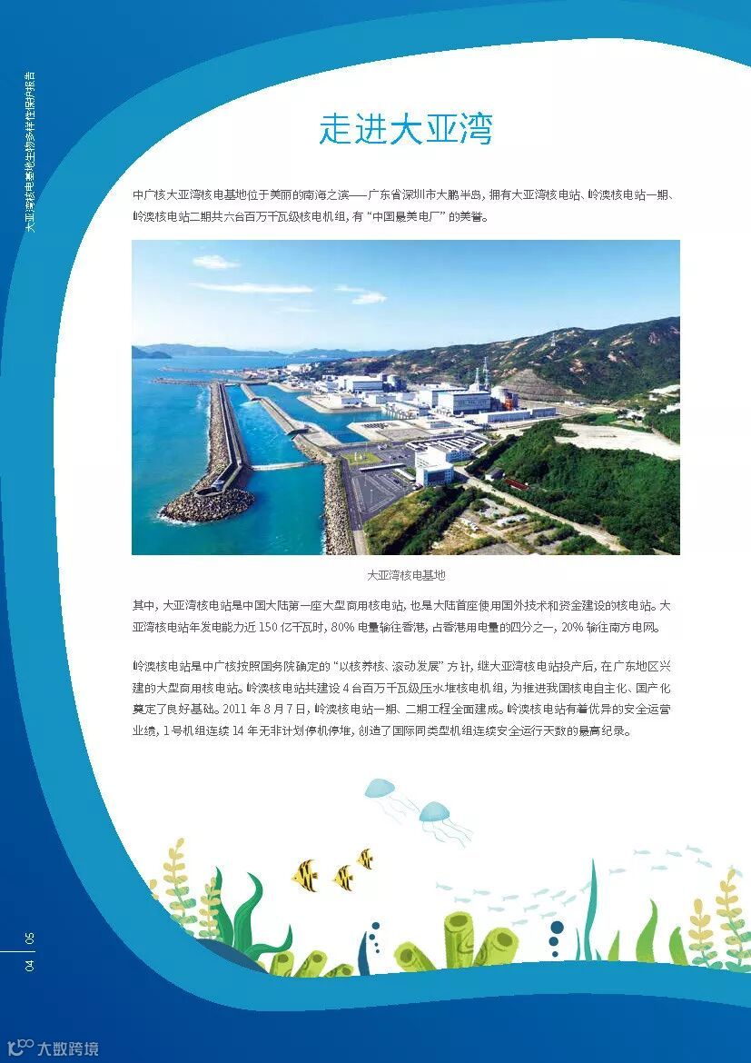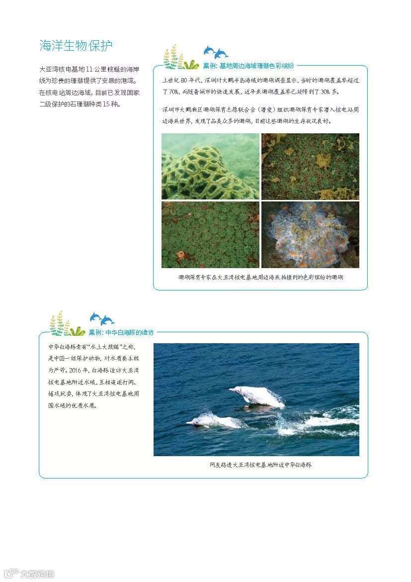 在中广核第七届“8·7公众开放体验日”,由公益组织深圳市红树林湿地保护基金会、深圳市大鹏新区珊瑚保育志愿联合会(潜爱)支持发布了《大亚湾核电基地生物多样性保护报告》,该报告是全国核电行业首份生物多样性保护报告。