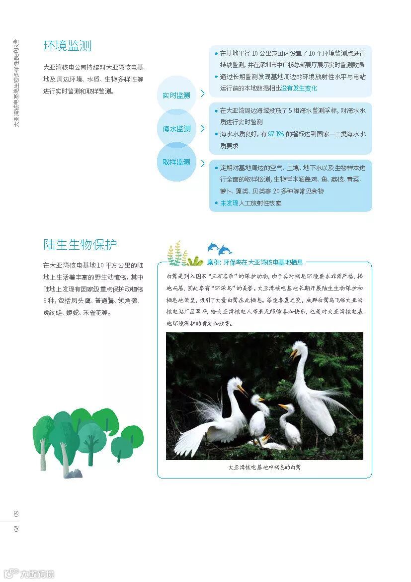报告指出,大亚湾核电运营管理有限责任公司长期开展生物多样性保护实践,在整个核电基地陆地及周边海域形成了物种丰富的生态圈。