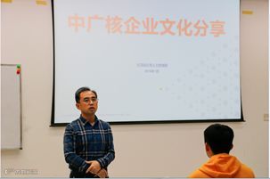 红沿河公司人力资源部经理钟汉强代表公司欢迎学员的到来,他结合自身经历向大家分享中广核从起步到如今的一路发展历程。