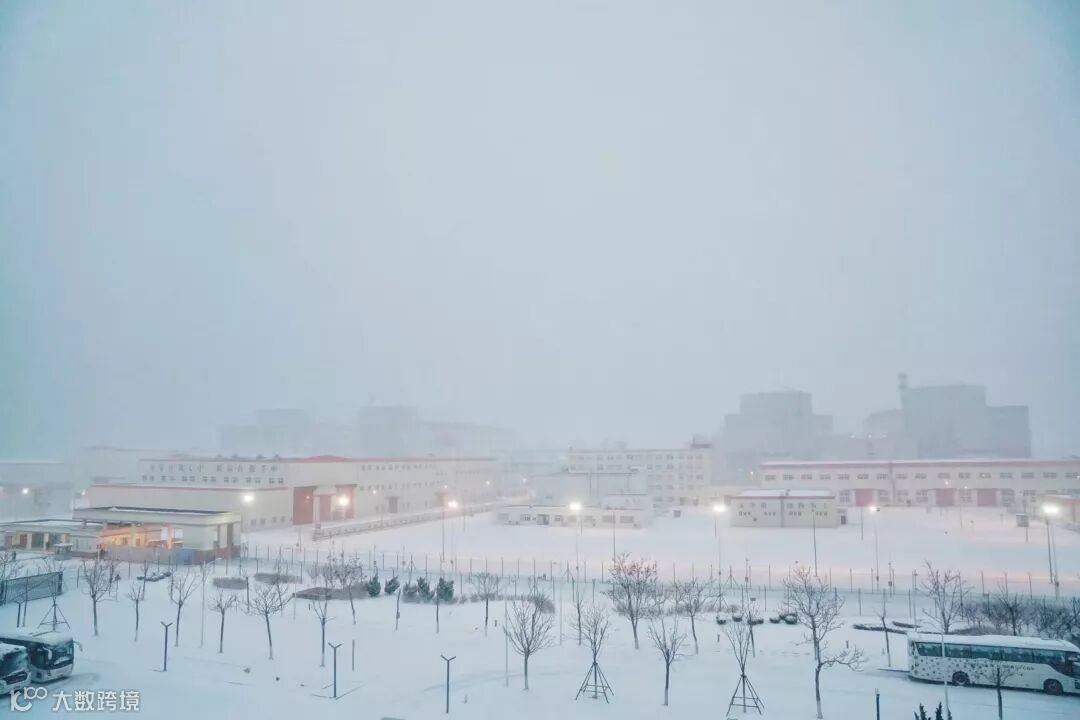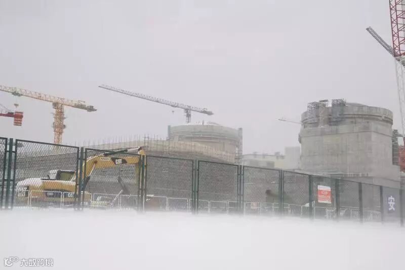 银装素裹的红沿河核电站远景,一片白茫茫景象。