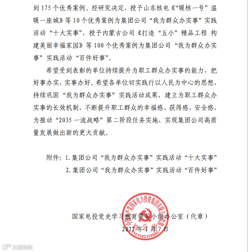 近日,国核设备《心系职工办证难 合力攻坚暖人心》典型案例从集团公司众多优秀案列中脱颖而出,荣获集团公司“我为群众办实事”实践活动“十大实事”。《旧楼注入新活力 红旗引领开新局——国核设备倾力打造党组织活动中心》荣获“我为群众办实事”实践活动“百件好事”。让我们一起走进这两个温暖的故事吧。
