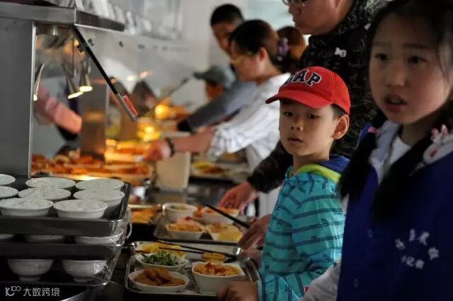 看小朋友这一托盘饭菜,然而眼睛还是盯着小姐姐的菜~