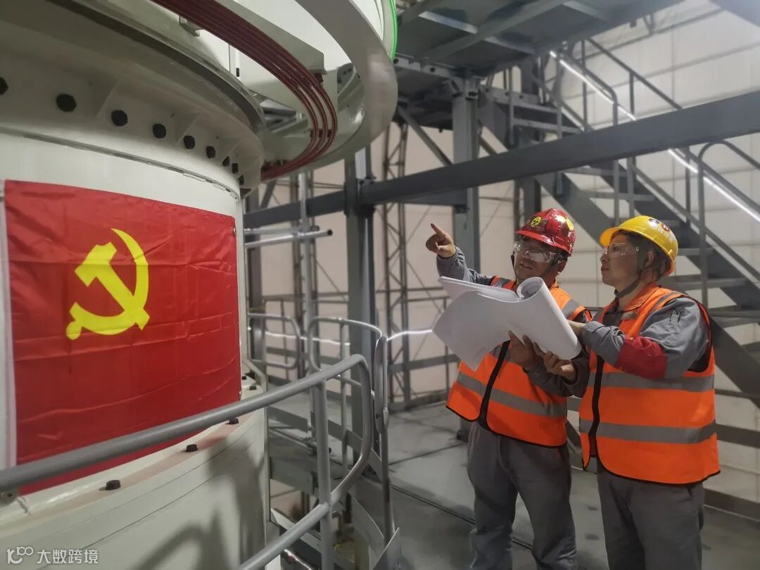 示范项目部经理张广来与IHP班组长张卫东为1号核岛一体化堆顶组件吊装交付做最后复盘。