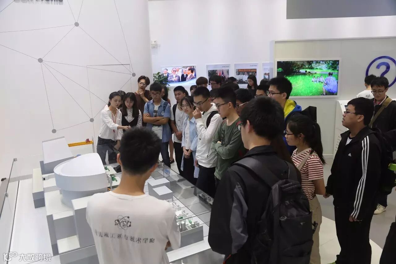 4月15日~16日,39名中大学子走进大亚湾核电基地,与核电站来了一个亲密接触。他们的第一站是这里——大亚湾核电的科普展厅。核电事业的起步、中广核光荣的历史、核电站发电原理、华龙一号技术……在我国核电事业高起点起步的地方,同学们听着介绍感叹不已。