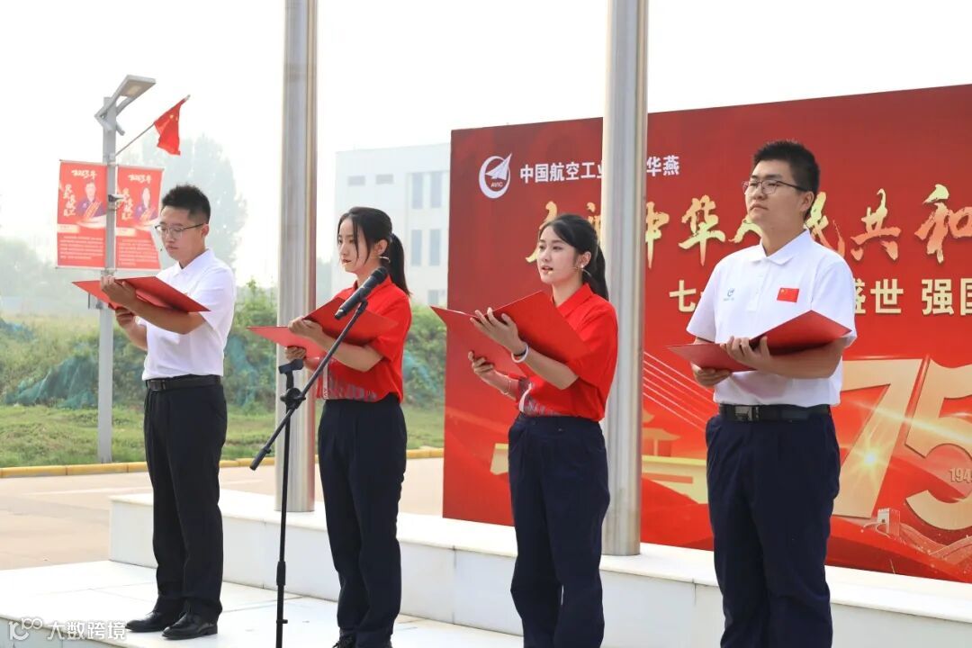 仪式上,华燕4名青年员工代表以诗朗诵《祖国,请让我为你歌唱》礼赞新中国,以青春之声歌颂青春中国。