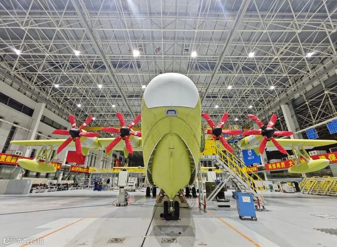 目前,AG600批产第二架机(1102架)已完成发动机、起落架等系统大件安装和全机线束导通绝缘,正开展航电系统测试工作。批产第三架机(1103架)也已完成机翼、垂平尾等大部件对接,进入系统安装阶段。