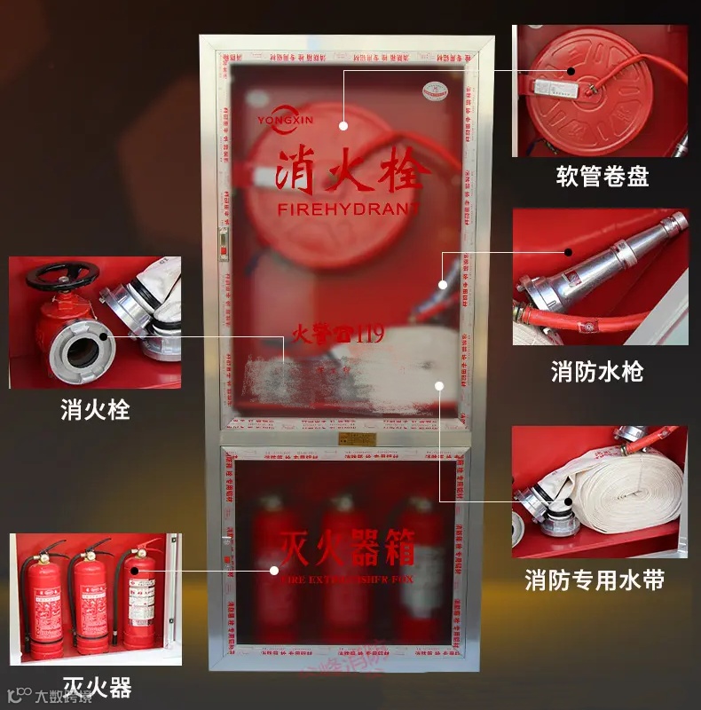 室内消火栓是建筑物应用较为广泛的一种消防灭火系统,是我们扑救室内火灾的重要设施之一。室内消火栓箱内的组件有消防水带、水枪、栓阀、消火栓报警按钮,部分消火栓箱内会设置消防软管卷盘(轻便消防水龙)、灭火器。