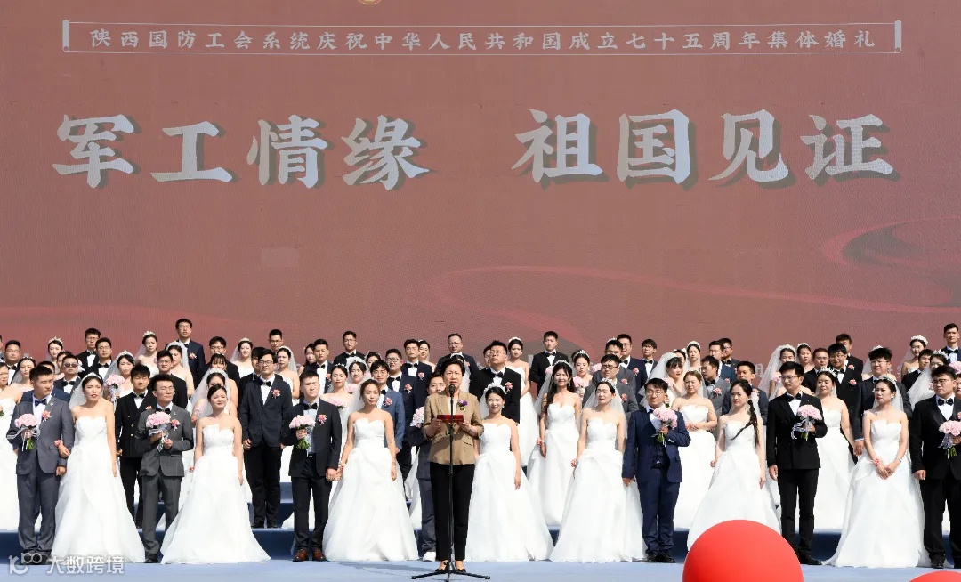 9月22日,在中华人民共和国成立75周年到来之际,由陕西省总工会指导、陕西省国防工会主办、中国航空工业集团第一飞机设计研究院承办的陕西国防工会系统“军工情缘 祖国见证”集体婚礼在西安市阎良区举行。省人大常委会副主任、省总工会主席李晓英出席并为75对新人证婚。