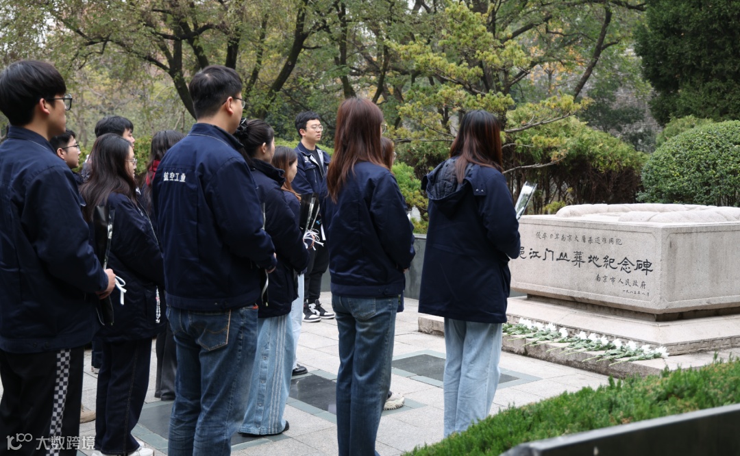 昭昭前事,惕惕后人。航空青年们缓步走入丛葬地,肃立默哀。纪念碑上的碑文历历在目:“挹江门丛葬地,是侵华日军南京大屠杀中我遇难同胞尸骨丛葬地之一。从1937年12月至1938年5月,南京崇善堂、红十字会等慈善团体先后6批,共收死难者遗骸5100多具,埋葬于挹江门东城墙根及其附近之姜家园、石榴园等地。特立此碑,以志其事,藉慰死者,兼励后人,牢记历史,振兴中华。”