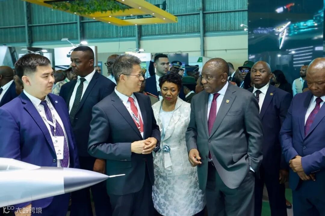 9月18日下午,南非总统拉马福萨在国防和退伍军人部部长莫采卡陪同下到访中航技展台,听取中国航空军贸产品体系和技术发展情况介绍。