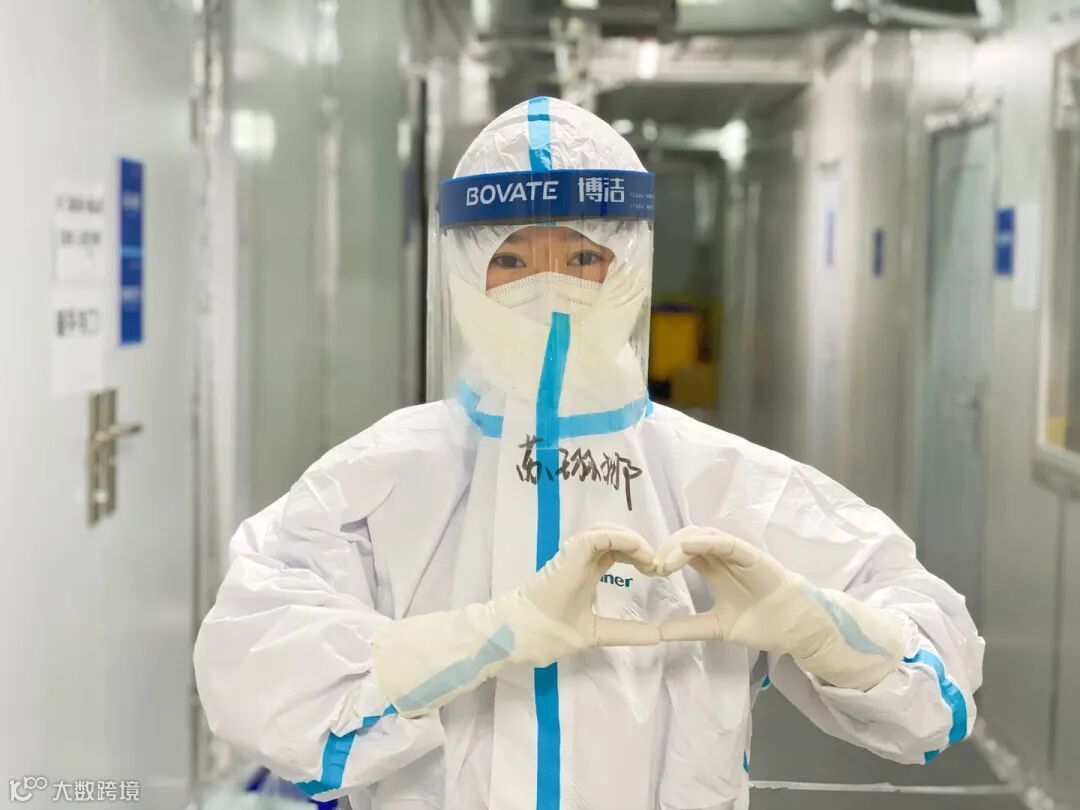 穿戴好厚厚的隔离防护服、口罩、护目镜、手套后,苏琳娜和同事们工作起来一般是不吃、不喝、不去卫生间。因为戴着两层手套,平时半个小时的工作,可能需要一两个小时才能完成。一圈处置下来,衣服基本上会湿透,护目镜变得模糊。天气热的时候时候会呼吸困难,“正常呼吸是件超级幸福的事。”虽然忙碌辛苦,但乐观开朗的苏琳娜正慢慢适应、平日里和队友们互帮互助、加油打气,工作的很开心。