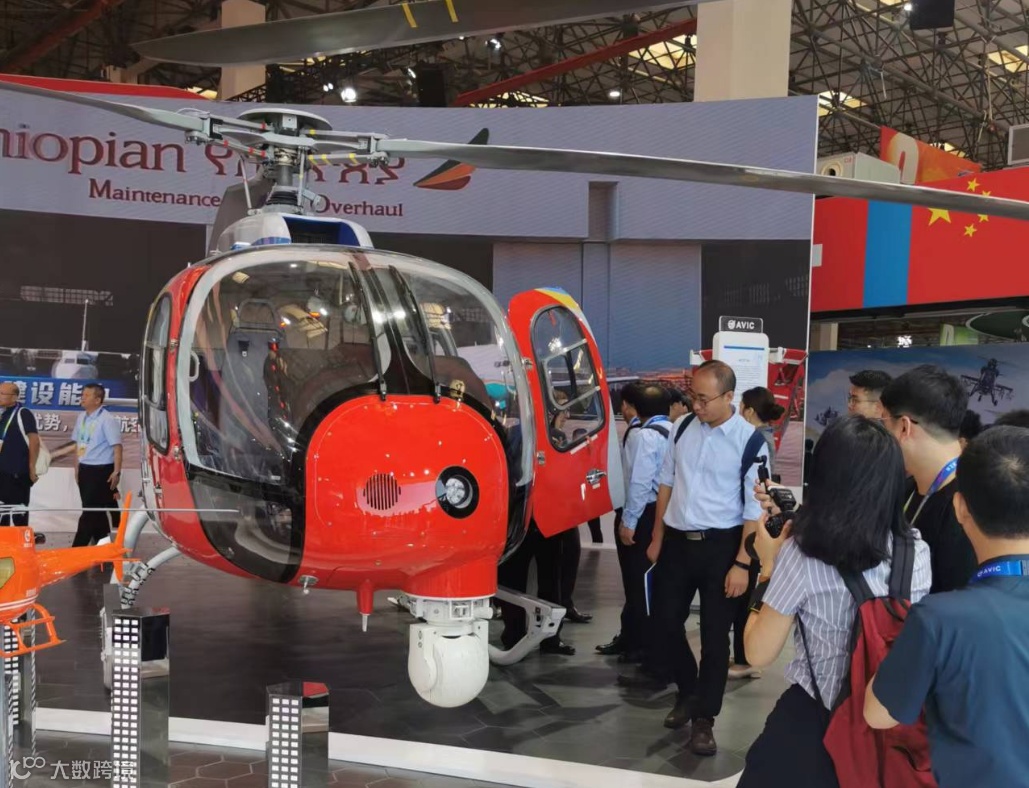 在刚刚结束的第六届天津直博会中,两架来自航空工业昌飞的AC311A型直升机闪亮登场,其中一架进行吊桶灭火应急演练,一架静态展示。