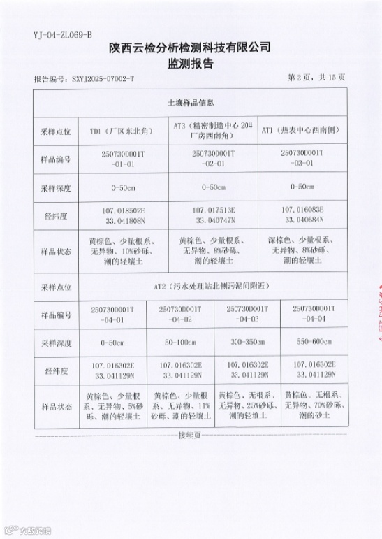 依据《中华人民共和国土壤污染防治法》《工矿用地土壤环境管理办法》《企业环境信息依法披露管理办法》和汉中市生态环境局南郑分局要求,现对公司汉中园区2025年度土壤与地下水自行监测结果进行公示。