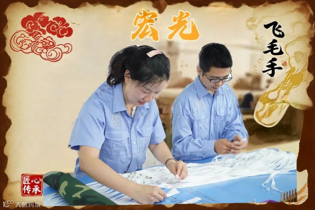 我的师傅是宏光降落伞分厂总装班的“航木兰”郭娟,她有门“飞毛手”绝技——给降落伞装配伞绳时,双手如蝶翼翻飞,能将数十根粗细仅5毫米的伞绳一次性精准对接,每分钟完成一具伞装配,比流水线标准快三成,且合格率常年保持100%。