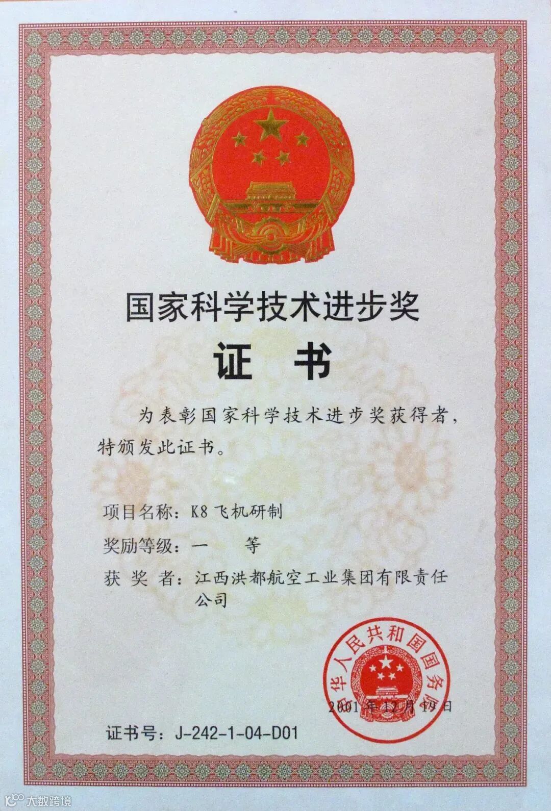 2001年,凭借其优良的飞行性能、训练效率高、使用维护费用低等特点,以及在世界上极高的声誉,K8飞机研制荣获了国家科学技术进步奖一等奖。