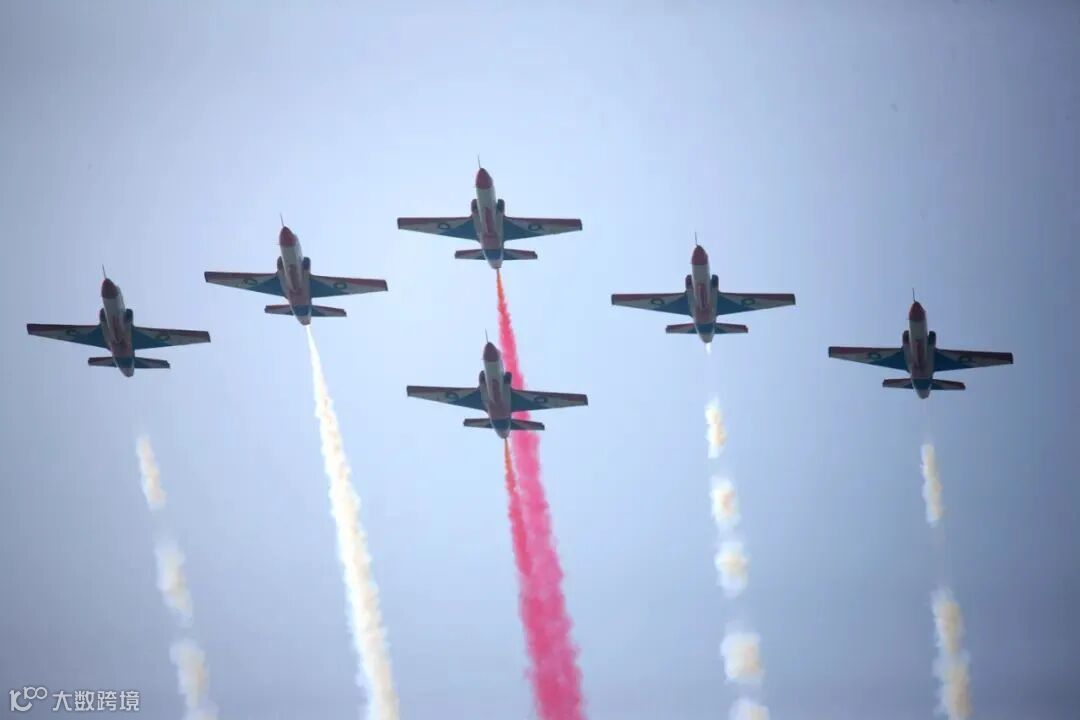 2010年10月,巴基斯坦空军K8在中国航展进行编队飞行