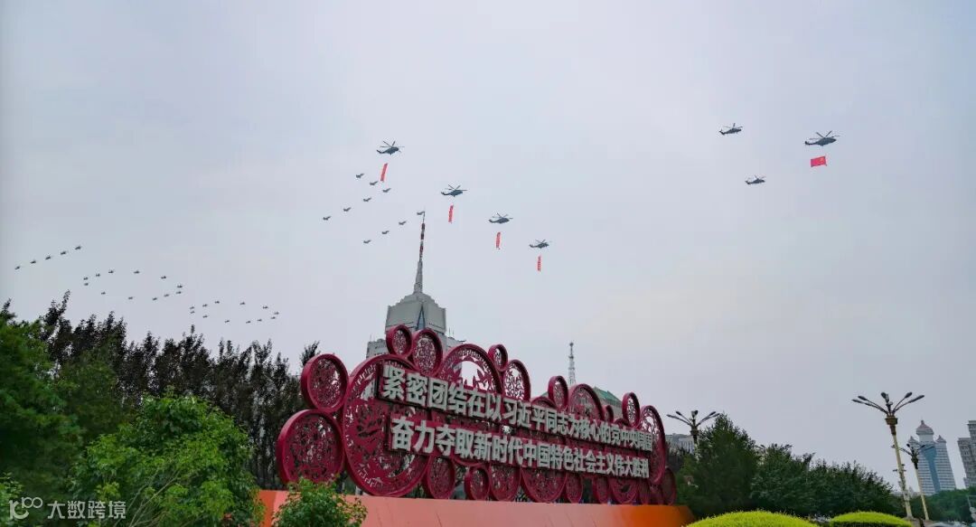 2019年,国庆70周年,直8悬挂党旗、国旗、军旗,以完美的姿态、磅礴的气势精彩亮相,飞越天安门。
