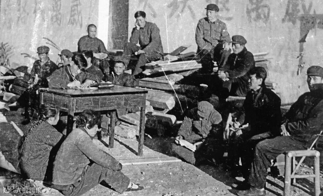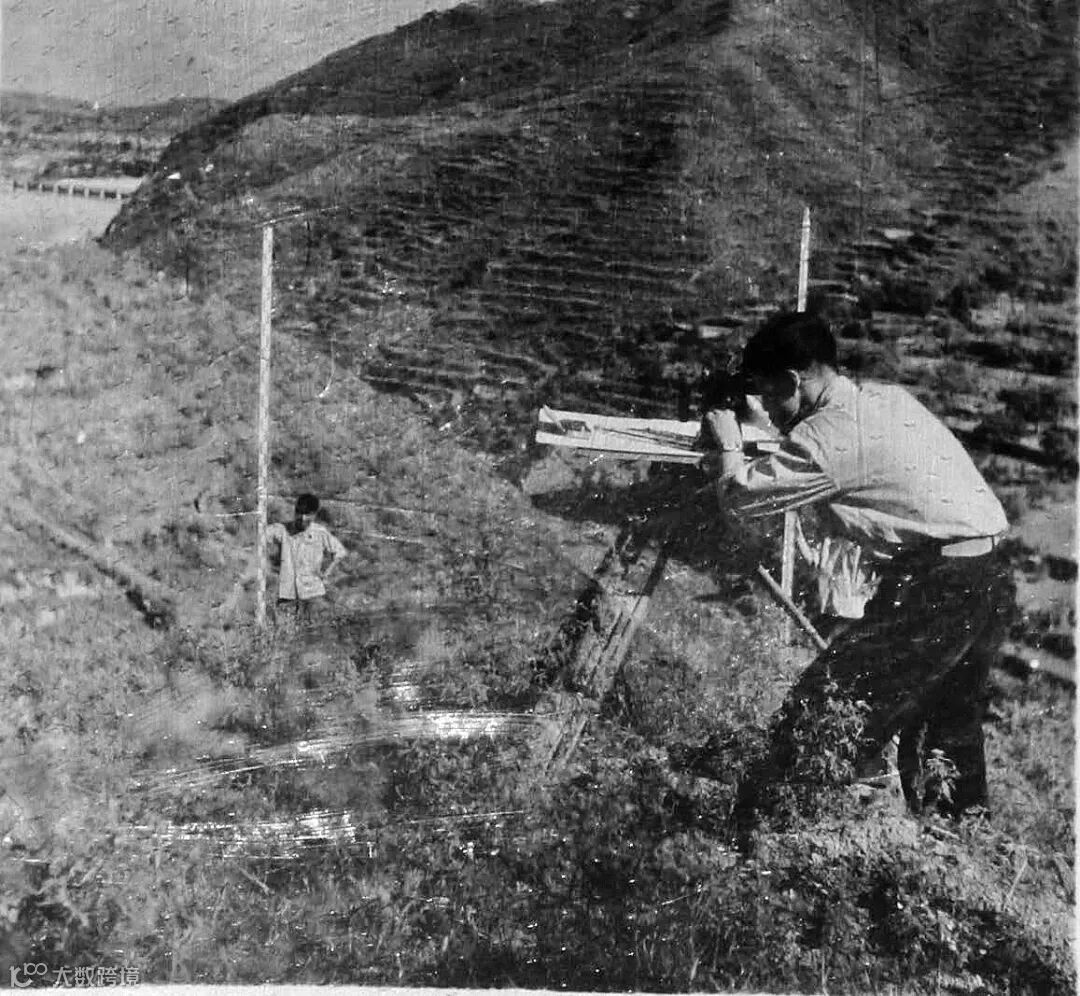 ▲三线建设者在露天“办公室”研究工作