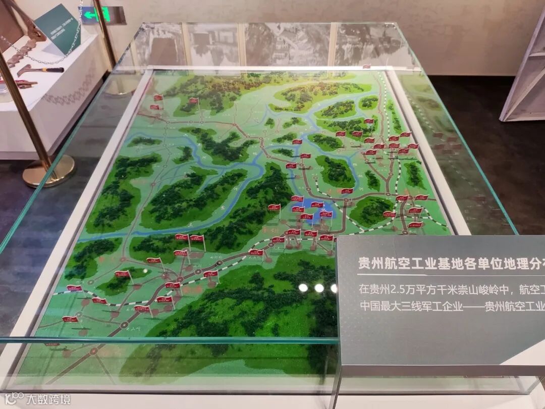 展区还有一个沙盘值得仔细观摩,展示的是贵州航空工业基地各单位地理分布情况。