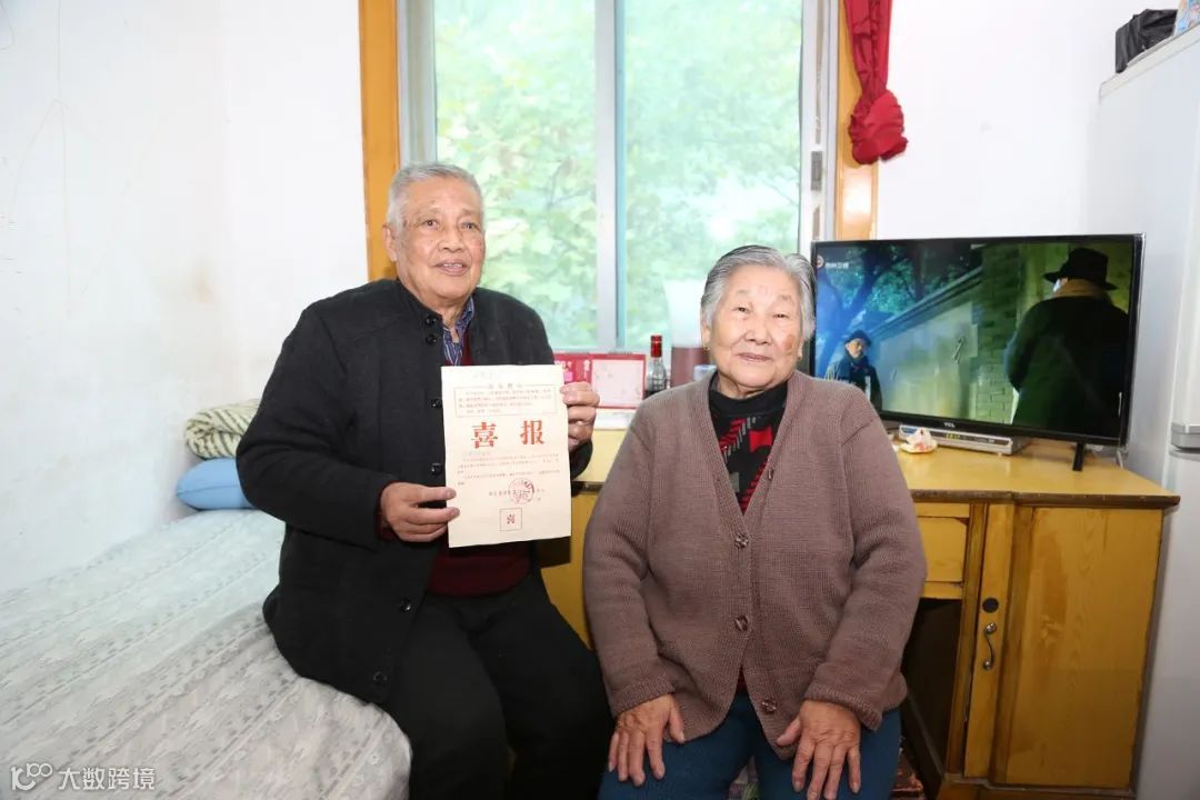 ▲左一为手执《喜报》的刘琪瑶老人,右一为刘老夫人(图片摄于2017年9月,于刘老302医院老院区家中)